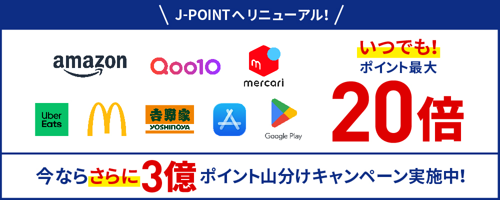 「J-POINT」へのリニューアルに伴い、「JCB ORIGINAL SERIES パートナー」は「J-POINTパートナー」へ生まれ変わりました。 新しいショップも多数オープン!ぜひご登録のうえご利用ください。